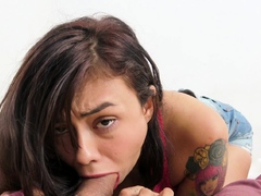 Extreme amateur pov blowjob by hot brunette latina